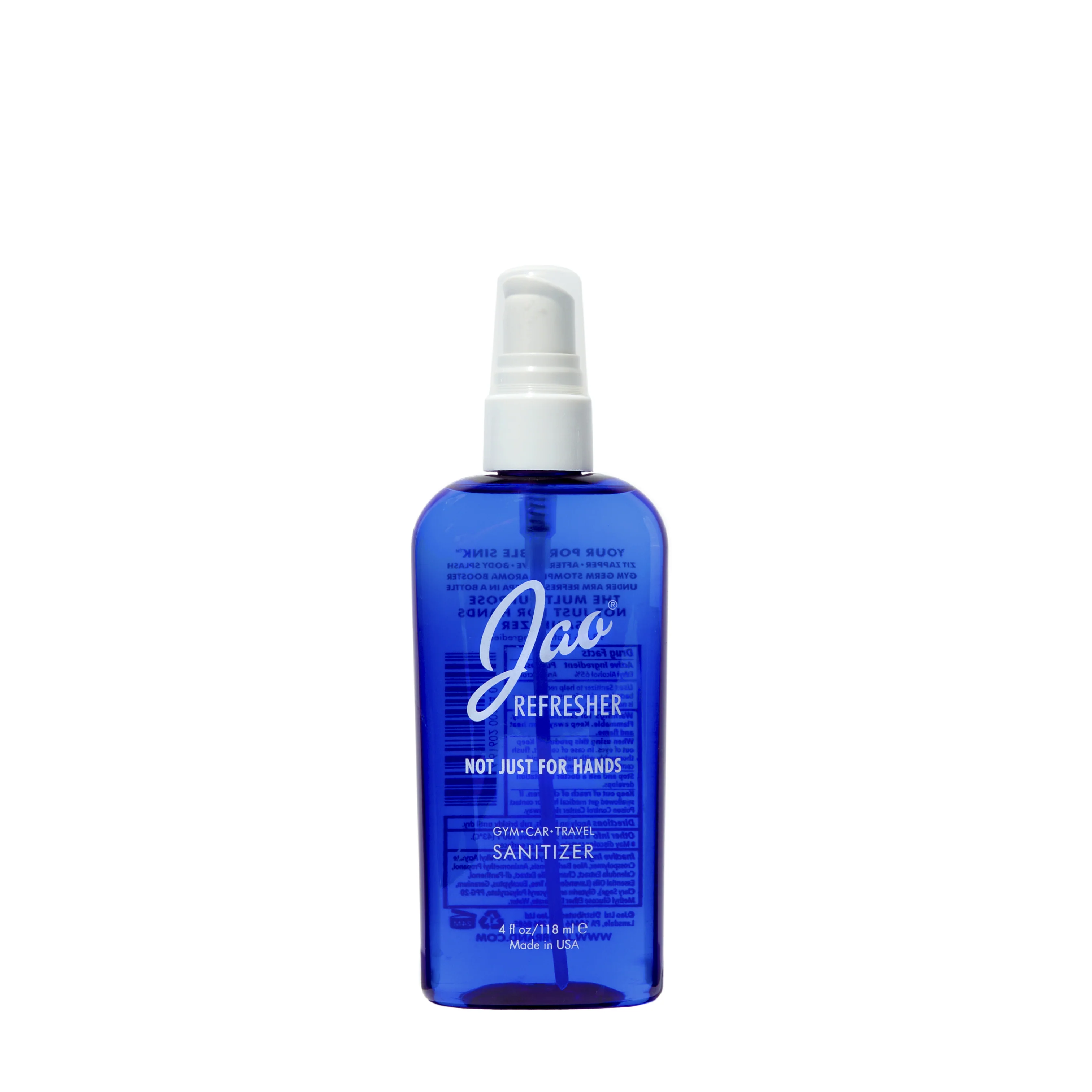 98.5% natural, multipurpose Jao Refresher™ is an instant disinfectant and aromatherapy boost in one. Kills germs and freshens hands with Ethyl Alcohol plant-based (less drying) and their very own blend of antiseptic essential oils: Lavender, Tea Tree, Eucalyptus, Geranium and Sage. They combine Chamomile and Calendula with natural cosmetic moisturizers so it will not dry out your hands. Jao does not use Triclosan or Bezalkonium Chloride, which are bad for the environment. Leaves skin feeling soft and refreshed - an instant skin cooler, body pick-me-up.